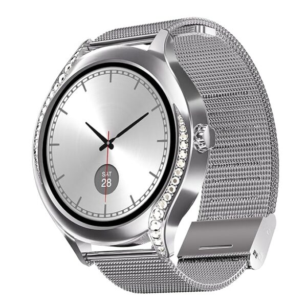 boAt Enigma Gem Women’s Luxury Smart Watch w/ 1.19” (3.02cm) AMOLED Display, Emergency SOS Live Location Sharing, Watch Face Studio, QR Tray, BT Calling, 700+ Active Mode, HR & SpO2 (Rose Gold)